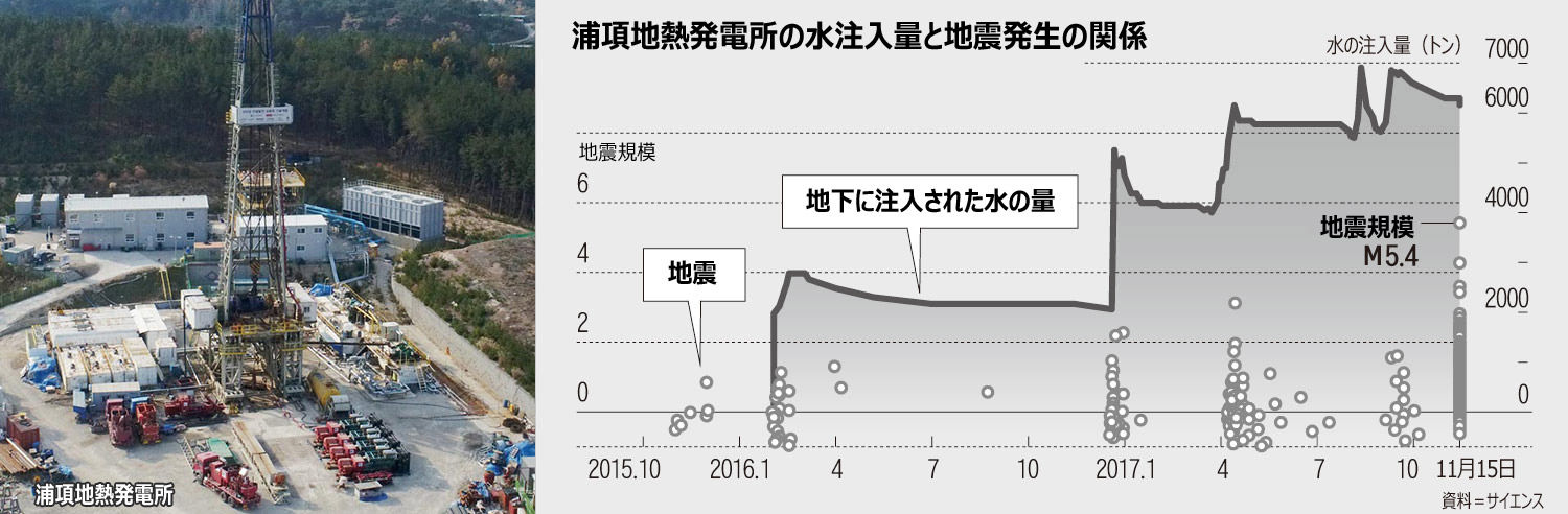 李晋漢(イ・ジンハン)高麗大教授、キム・グァンヒ釜山大教授ら研究陣は、科学誌「サイエンス」最新号に発表した論文で、過去40年間に浦項興海地区で発生した地震を分析した結果、2016年から始まった地熱発電所の水注入が地震の直接的原因であることが立証されたと指摘した。浦項地震は地熱発電所によって誘発されたとの主張だ。