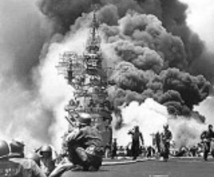 ▲日本の神風爆撃で燃える米軍戦艦/ネイバー知識百科