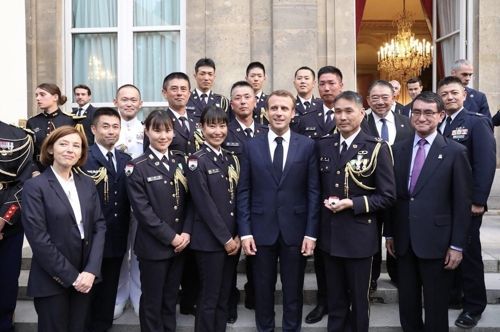自衛隊と河野太郎日本外相をエリゼ宮に招待し、記念写真を撮り、これを自分のTwitterに上げたりもした。