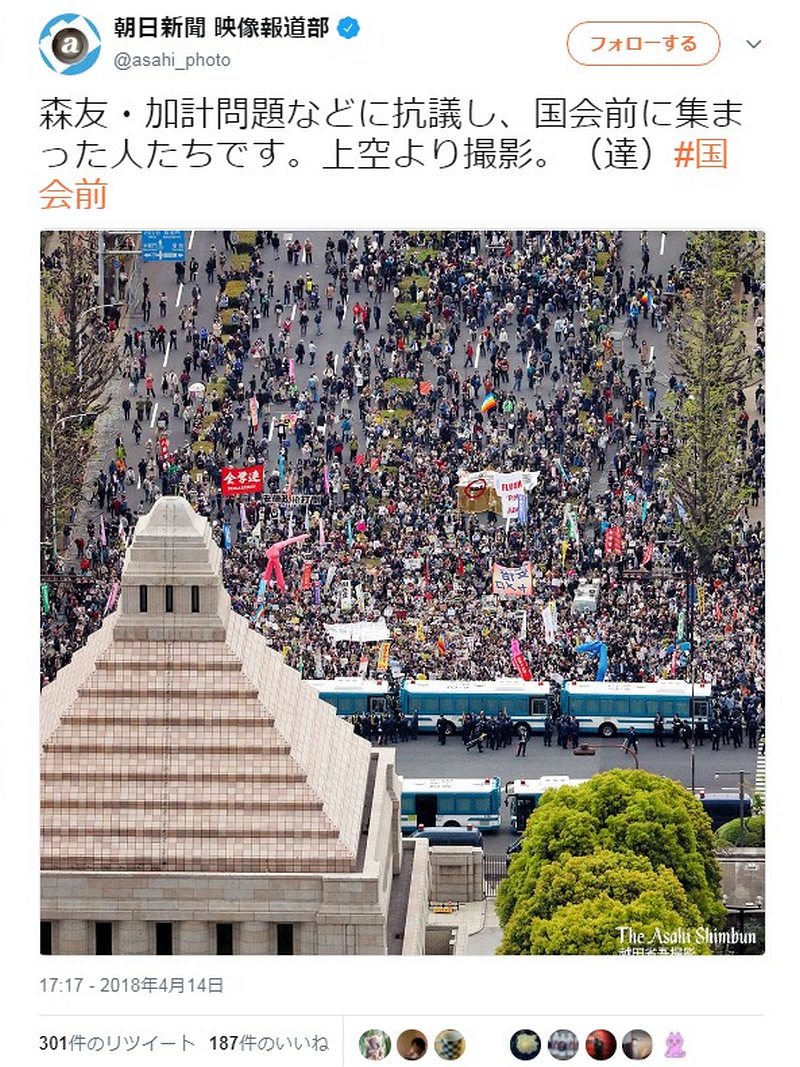 朝日が自信を持って「0414国会デモ」の写真を公開してるけど