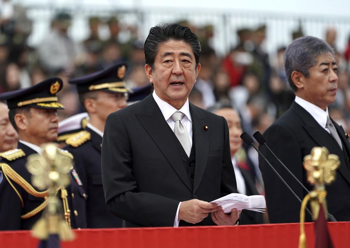 安倍晋三首相は14日、陸上自衛隊朝霞訓練場(埼玉県新座市など)で開いた観閲式で訓示した。「全ての自衛隊員が強い誇りを持って任務を全うできる環境を整えるのは今を生きる政治家の責任だ。責任を果たす決意だ」と述べ、憲法9条に自衛隊の存在を明記する改憲案の実現に意欲を示した。以下略(日本経済新聞)