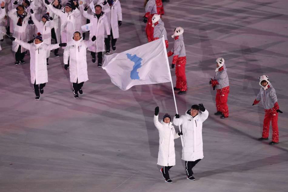 先月9日に行われた平昌冬季五輪の開会式では韓国と北朝鮮の選手が政治的に中立な「統一旗」を手に合同入場を披露し、両国間で関係改善が進む様子を示していた。以下略