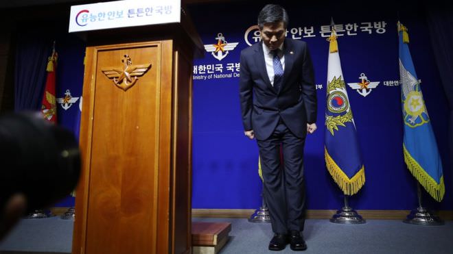 韓国の鄭景斗(チョン・ギョンドゥ)国防相は7日の記者会見で、国民に対し頭を下げた