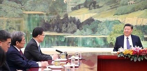 2018年3月12日、鄭義溶(チョン・ウィヨン)国家安保室長が文在寅(ムン・ジェイン)大統領の特使として訪中し、中国の習近平主席に会っている。(北京共同取材団)