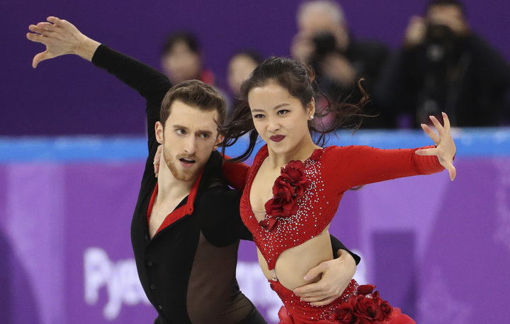 平昌五輪第3日(11日、江陵アイスアリーナ)フィギュアスケートの10チームによる団体戦、アイスダンス・ショートダンス(SD)であわやのハプニング!? 韓国ペアの女性の衣装がずり落ちかける場面があった。