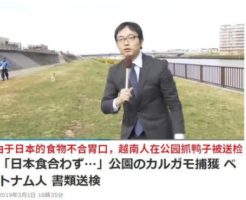 中国人「日本の食べ物が口に合わず公園でカルガモを捕まえて食べようとしたベトナム人」中国 日本の食べ物が口に合わず公園でカルガモを捕まえて食べようとしたベトナム人 NHKの報道によれば、東京江戸川区の公園にいた可愛いカルガモを近くに住むベトナム人が持ち去ったそうだ。警視庁は鳥獣保護法違反の容疑でこのベトナム人 […] 続きを読む