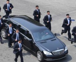 正恩氏の車を走って警護する北の屈強なSPたち(海外の反応)