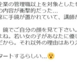 韓国人「ある日本企業のセクハラ防止教育の内容」韓国 ある日本企業のセクハラ防止教育の内容 ある大企業の管理職以上を対象としたセクハラ研修の内容が衝撃的だった…全員の席に手鏡が置かれていて、講師が開始直後に「はい、鏡でご自分の顔を見て下さい。分かりますよね。若い女の子があな […] 続きを読む