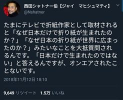 韓国人「日本で折り紙が生まれ、世界に羽ばたいた理由?」韓国 日本で折り紙が生まれ、世界に羽ばたいた理由? スレ主韓国人 うん…そんなことないから! ガセンギ.comhttps://goo.gl/7GJX3W Source: かんこく!韓国の反応翻訳ブログ 続きを読む