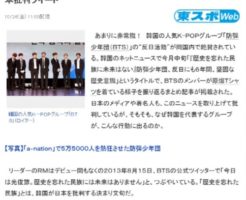 韓国人「日本には防弾少年団のような歌手がいないから羨ましいんだろうな」 日本の極右媒体「BTSごり押し非難」も…ツアーはすべて完売韓国 日本の極右媒体「BTSごり押し非難」も…ツアーはすべて完売 日本のメディアの防弾少年団への鋭い非難がネチズンの公憤を買っている。 去る26日、日本メディア「東スポWeb」は、「韓国防弾少年団の非常識な リーダーは、日本非 […] 続きを読む