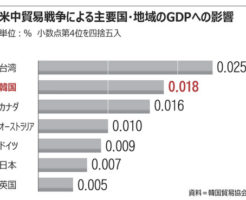 米中貿易戦争によるGDPへの影響、1位台湾・2位韓国韓国 1: 2018/08/20(月) 10:40:30.37 ID:CAP_USER 米中貿易戦争が世界的な景気低迷につながれば、韓国は台湾に次いで大きな被害を受けるという分析が示された。 韓国貿易協会国際貿易研究院はこのほ […] 続きを読む