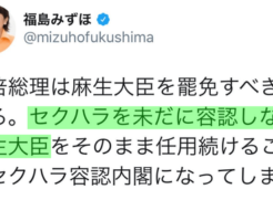 福島みずほ「セクハラを未だに容認しない麻生大臣」 ネット「こいつ日本語不自由すぎるだろw」「党内部で引退勧告してやれよ」韓国 1: 2018/05/12(土) 12:37:12.28 ID:CAP_USER9 http://anonymous-post.com/archives/23462 安倍総理は麻生大神を罷免べきです。それをしないのであれ […] 続きを読む