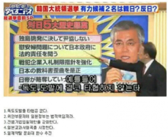 韓国人「日本の放送、文在寅が大統領になってはならない理由」韓国 日本の放送、文在寅が大統領になってはならない理由 1.独島挑発を妥協しない。2.慰安婦問題について日本政府に法的責任を問う。3.戦犯企業の入札制限を強化する。4.日本の教科書歪曲を是正する。5.日本が略奪した文化財の返還 […] 続きを読む
