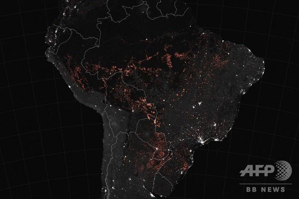 南米アマゾンを赤く染める森林火災、NASAが衛星画像を公開