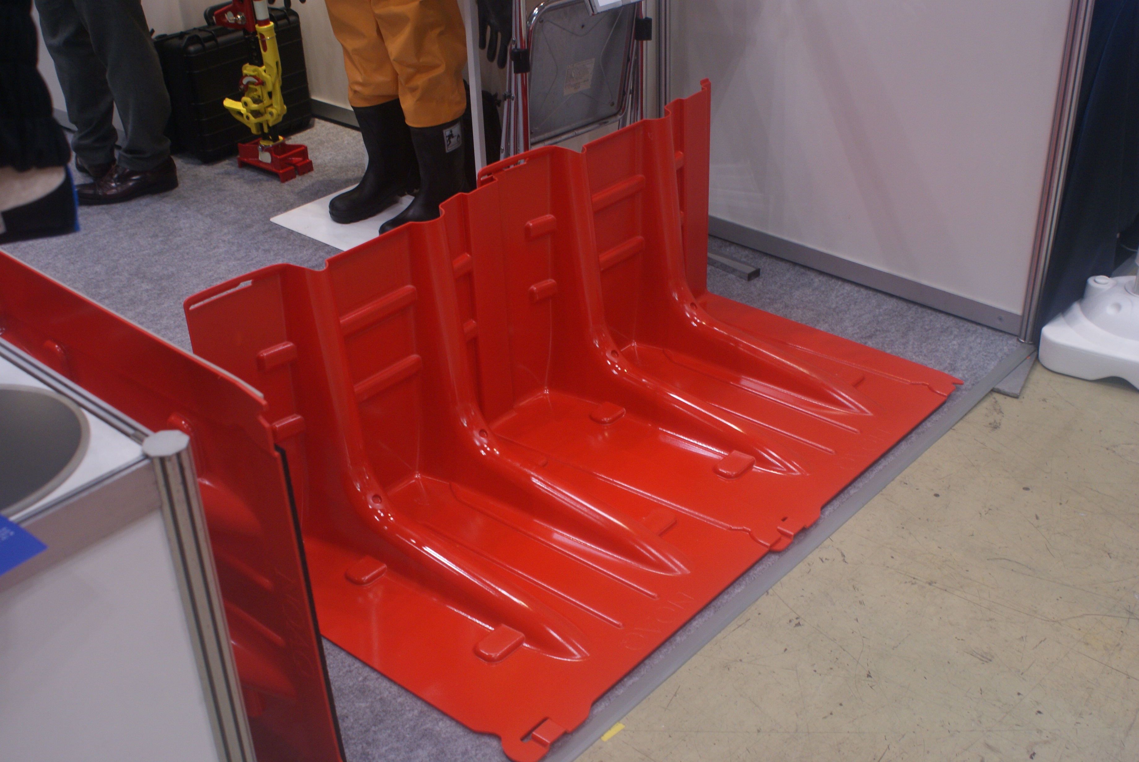 こちらは土嚢に代わる水害対策装備でごく単純な構造で”防波堤”のように機能するらしいです。