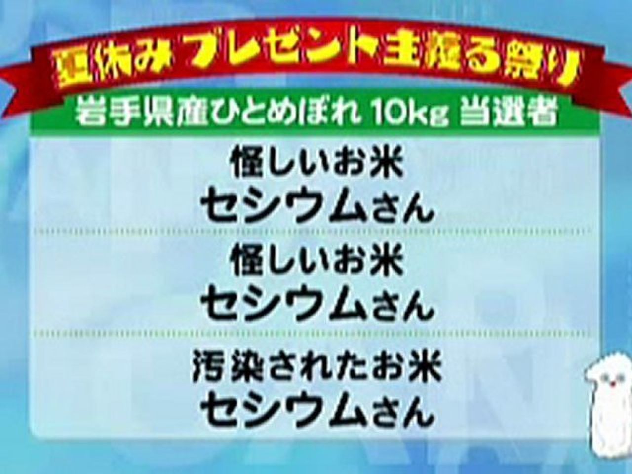 引用元: ・「怪しいお米 セシウムさん」とかいう史上最悪の放送事故wwww