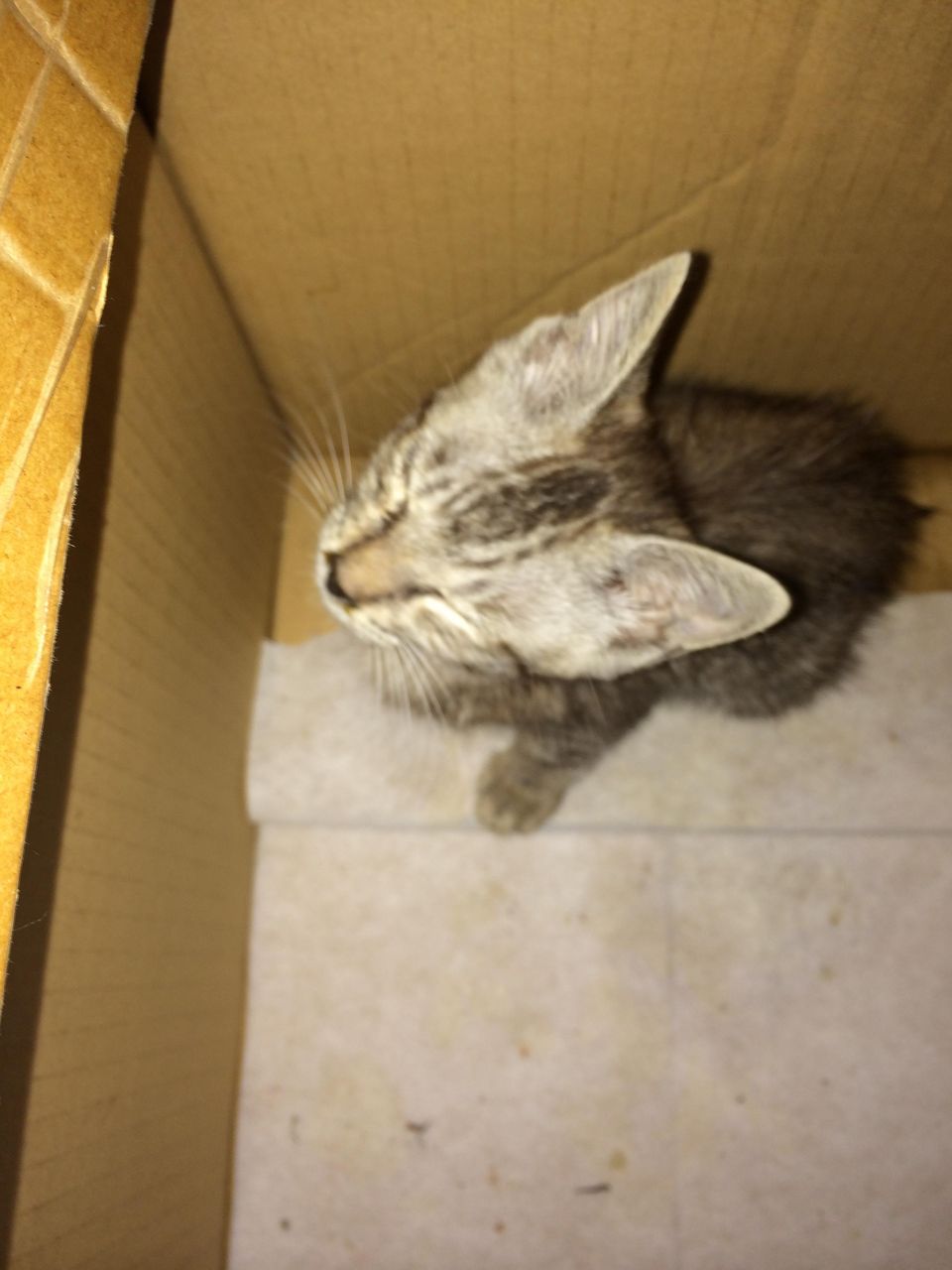 仕事の昼休みに幹線道路のど真ん中で立ち往生してた子猫を保護