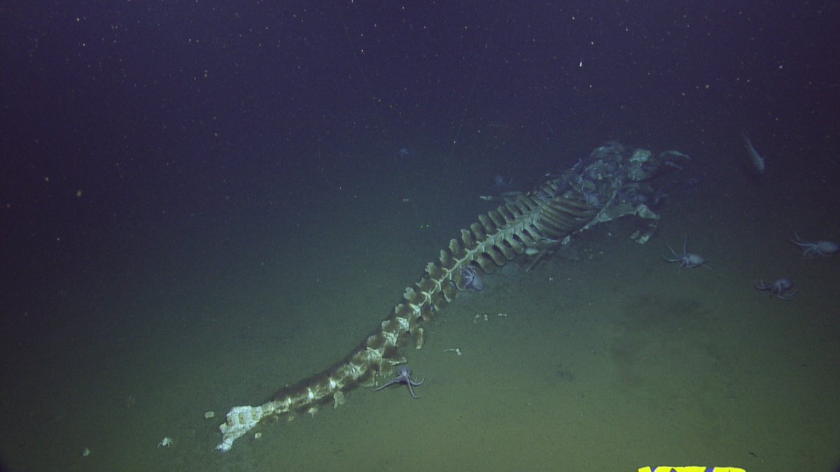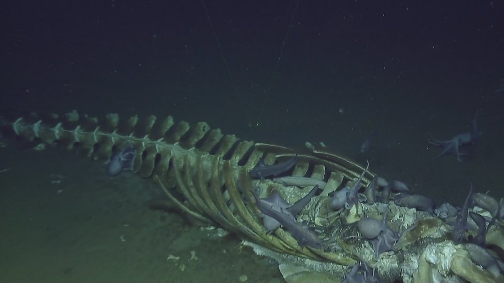 researchers who looked on as the fish, octopods, and marine worms picked the huge carcass clean.
