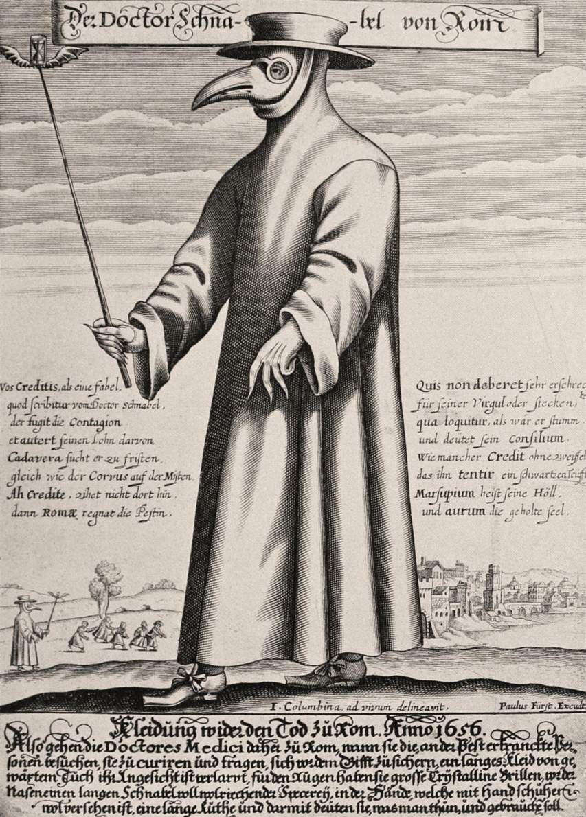 17世紀のヨーロッパでは、ペストの治療にあたる医師たちは、独特な防護服を身にまとい、鳥のクチバシのようなものが付いたマスクを着用していた。以来、この格好は不吉なイメージを帯びるようになるが、それにしてもなぜこんな形のマスクを使ったのだろうか。