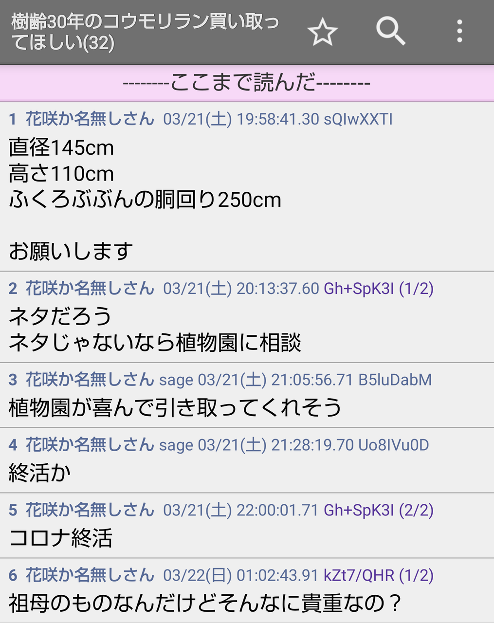 植物板に「よくわからんけどおばあちゃんが育ててるコウモリランって植物があるから鑑定してくれ