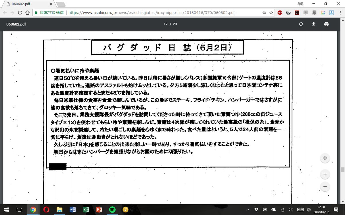 陸自イラク日報「5人で24人前の素麺を一気に食べた、動けなくなった」