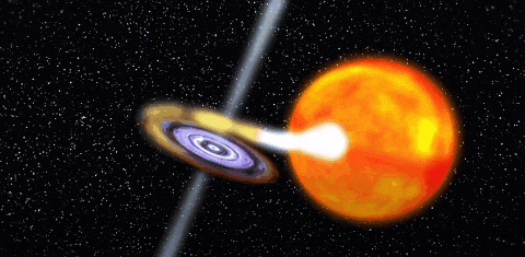 円盤の上下に吹き出すジェットも確認でき、マイクロクエーサーという呼び方もされています。