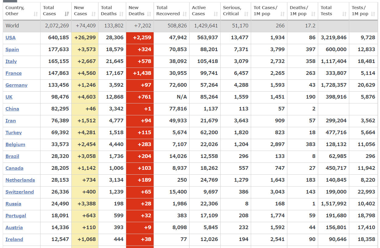 【コロナ日報】イタリア、感染者162,488(+ 2,972)、死者21,067(+ 602)、回復37,130 15日