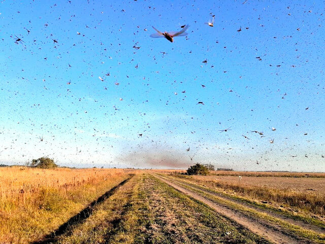 地元農業専門紙によると、大群の帯は長さ10キロ、幅8キロほどに及び、毎日100キロほど移動。