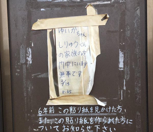 この貼り紙のすぐ横にデカデカと「捜索済」とだけ書かれた別の紙が貼ってある