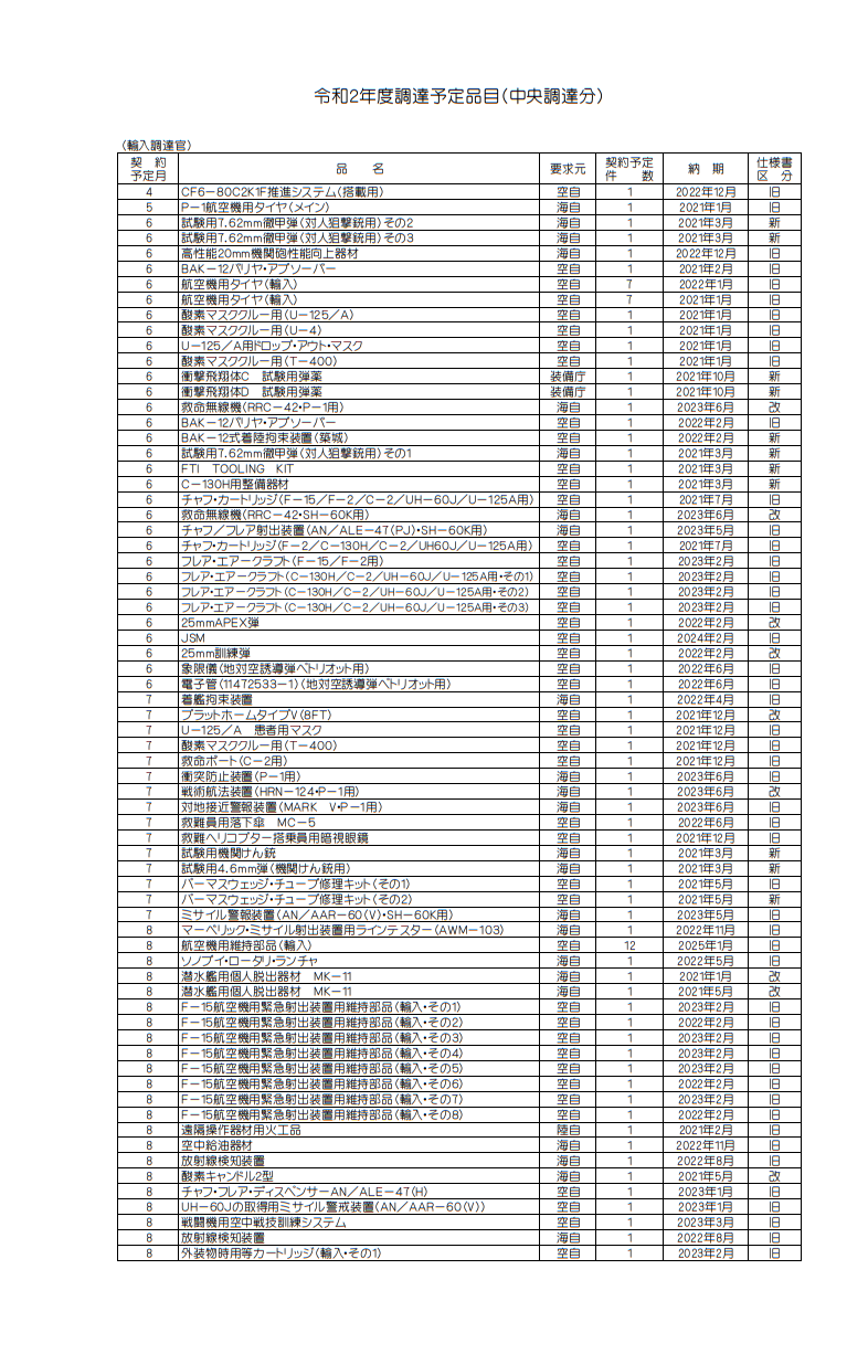 令和2年度 調達予定品目(中央調達分) 歴史 X Facebook はてブ Pocket LINE コピー 2020.07.03 無題Name名無し20/06/26(金)19:52:21 No.1307290 防衛省ホームページ 令和2年度 調達予定品目(中央調達分) Just a moment... 続きを読む Source: 系まとめブログ