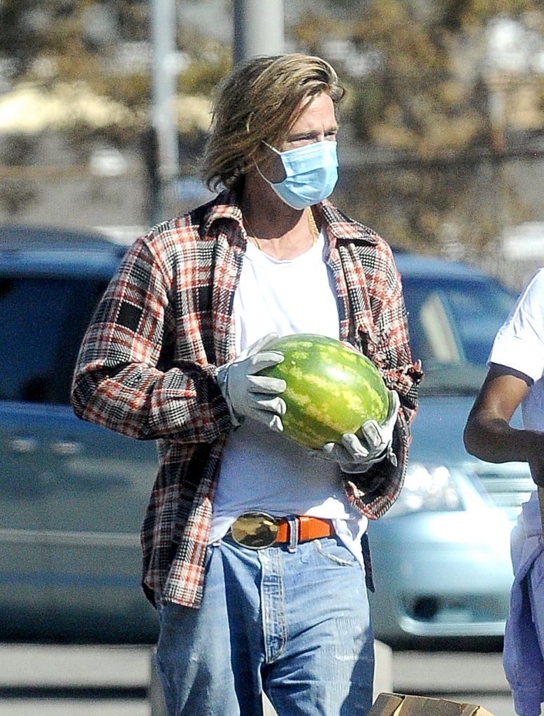 先週ロサンゼルスで所得の低い世帯の人々に食品を運ぶ手伝いをしていたブラッド・ピット