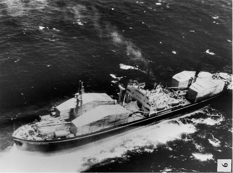 コマール型ミサイル艇を運搬中の貨物船。キューバ危機が表面化する前の1962年9月に撮影。