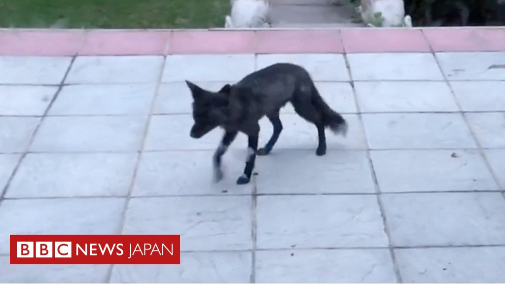 ロンドン西部の住宅の庭で、珍しい黒いキツネが目撃された。