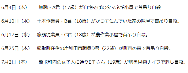 また5人の自殺の前に2人の17歳が亡くなっていた。