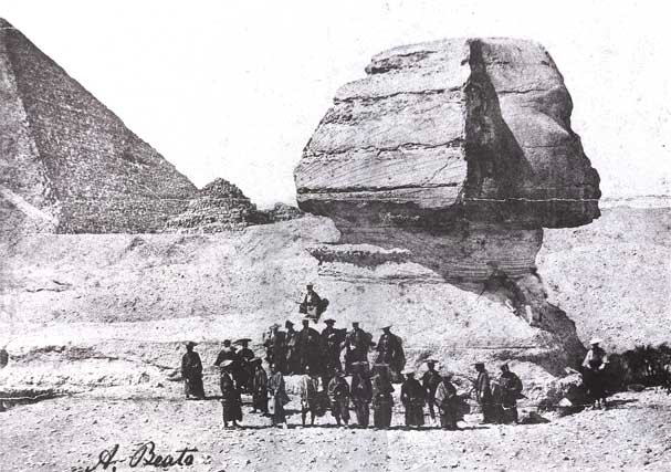 スフィンクスで記念撮影する遣欧使節団一行(1864年)
