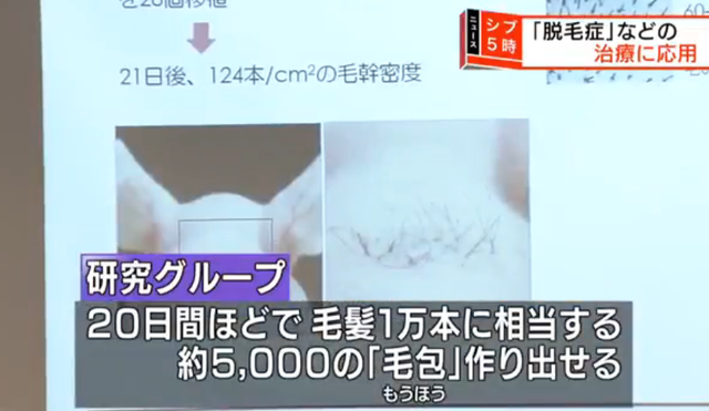 「脱毛症」などの治療に応用するため髪の毛を作り出す「毛包(もうほう)」という器官を人工的に大量に作る技術を理化学研究所などの研究グループが開発し、来月から動物で安全性を確かめる試験を始めることになりました。