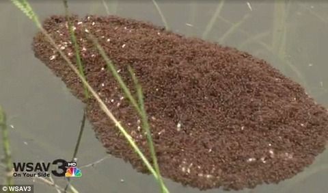 専門家によると、このような「アリのいかだ」を見つけても決して近寄ってはいけないそうですが、その理由は一瞬でアリたちが身体に這い上がってきて、噛まれるからだそうです。