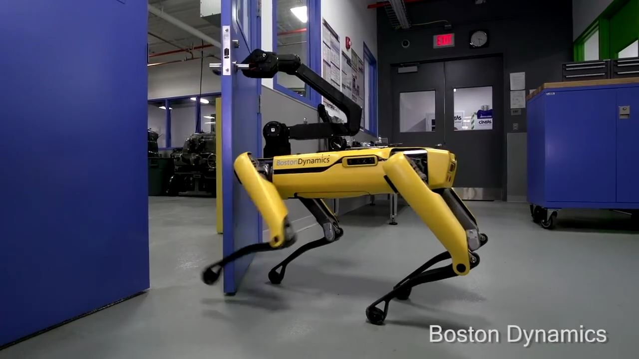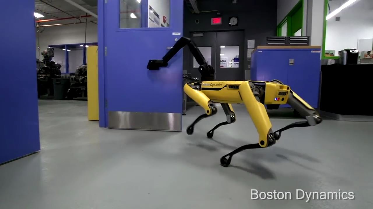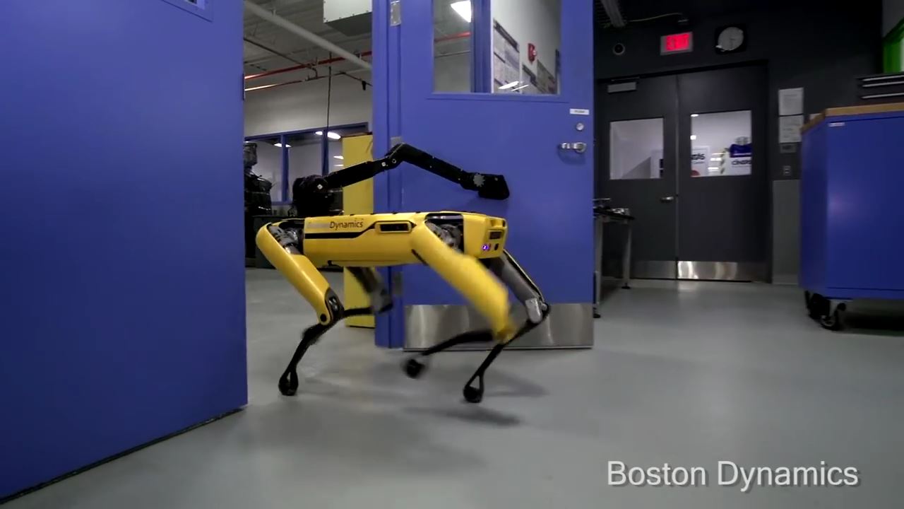 四足歩行ロボットなので、背中から生えているアームによりノブを回すがそれでもかなりの進化。