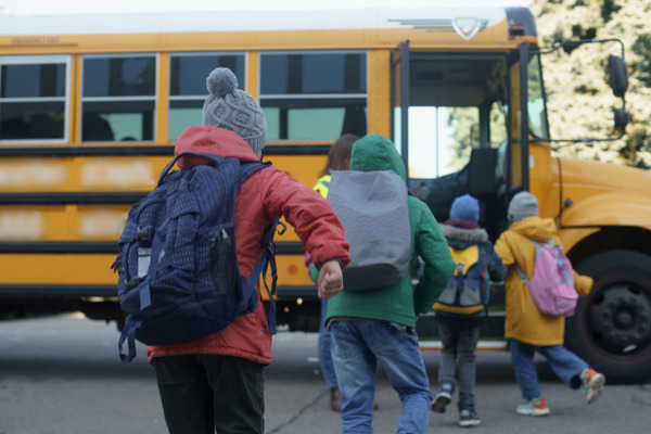 朝、子どもたちを乗せたバスが学校に到着し子どもたちが降車するのを見届けると、ドライバーはエンジンキーをイグニッションから抜く。