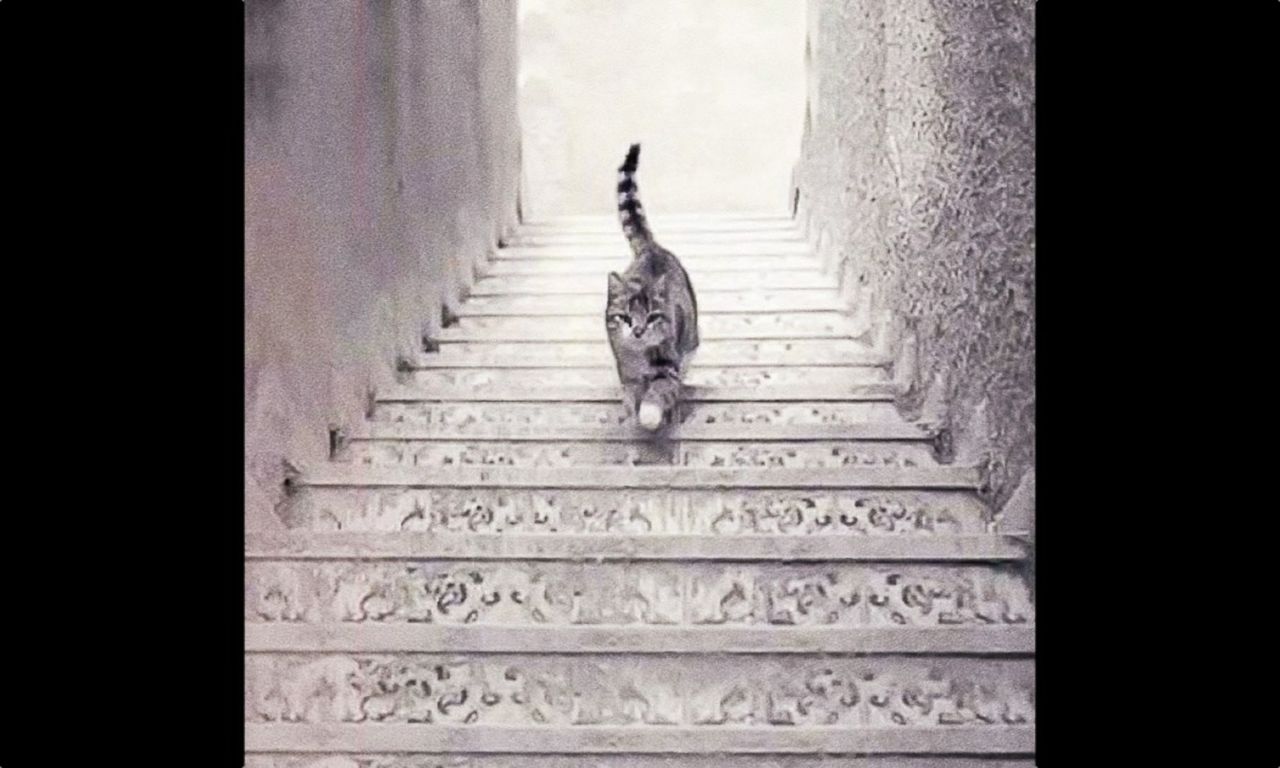 【画像】この猫って「階段を登ってる」「階段を下ってる」どっちなの?