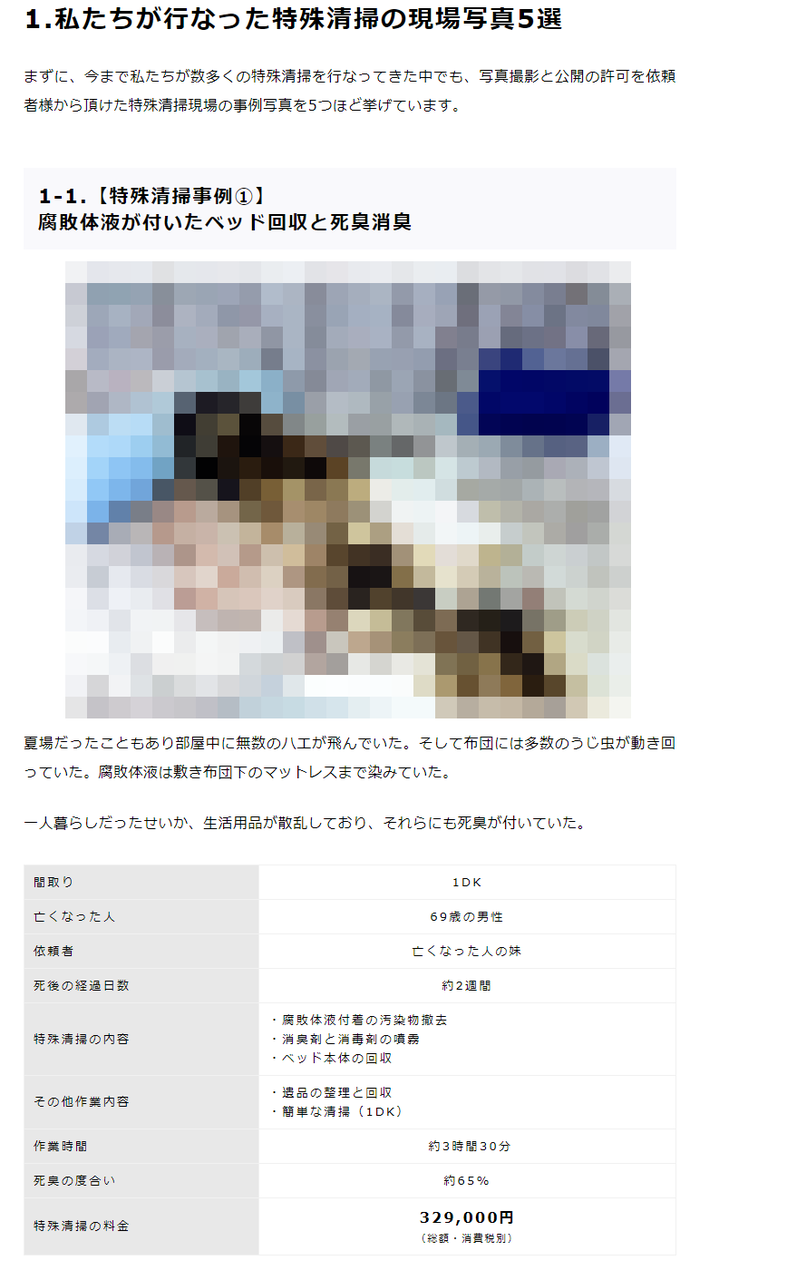 【閲覧注意】特殊清掃業者のホームページ掲載写真がすごい