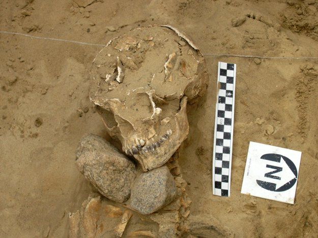 新たにこの夏に見つかった5体のうち1人は、そばに2枚の大きな屋根瓦が置かれてあり、大きく開けた口の中には拳より大きな岩が差し込まれていた。明らかに人為的なやり方で、発見したソーレン教授は「こんな埋葬方法は見たことがない。非常に気味が悪く、奇妙だ」と驚きを隠さない。