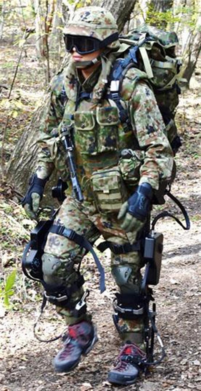 パワードスーツを装着した自衛隊員(防衛装備庁提供)