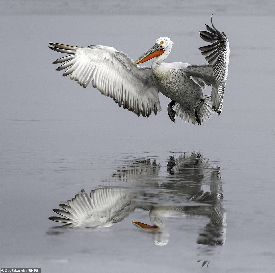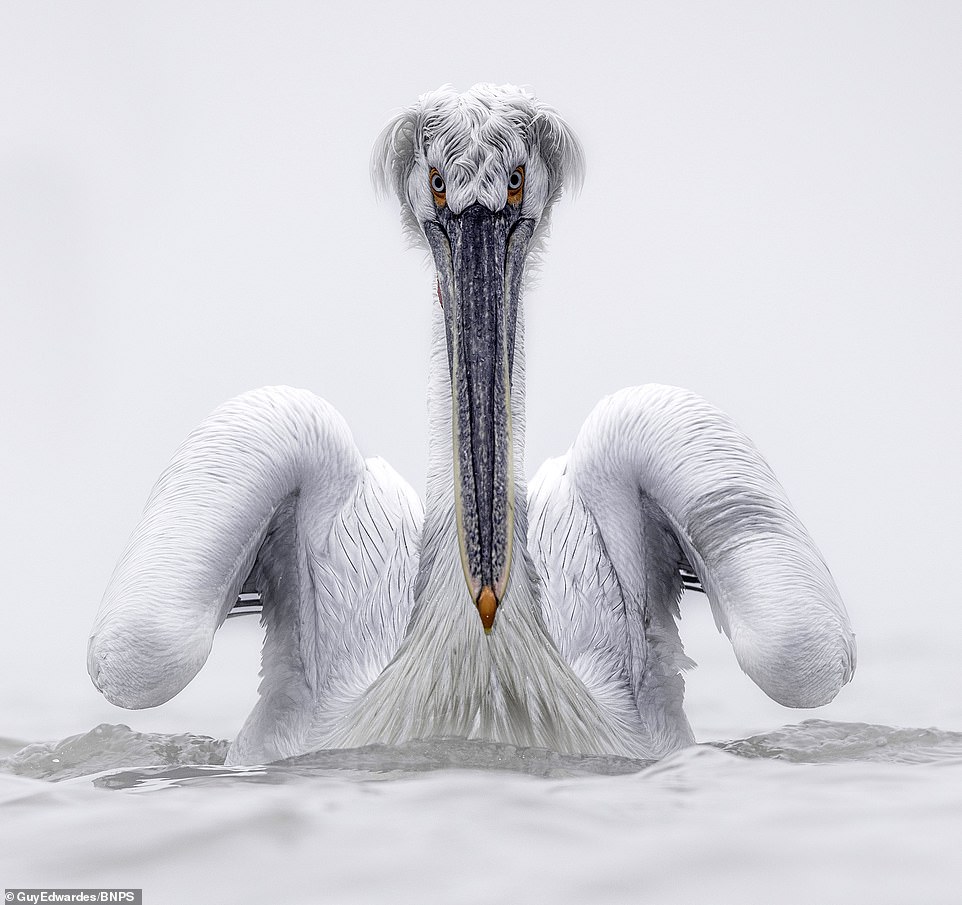 The pelican you don’t want to cross! Angry bird doesn’t seem happy about its lake freezing in Greece during cold spell