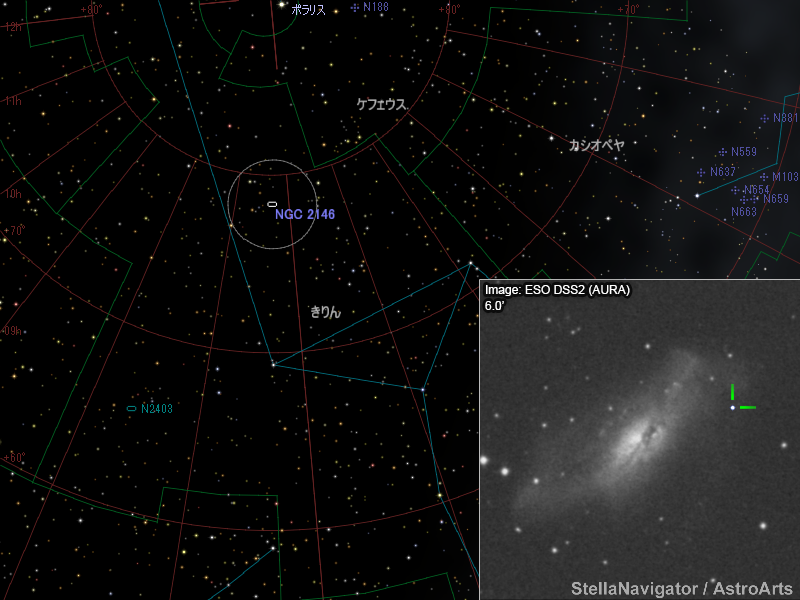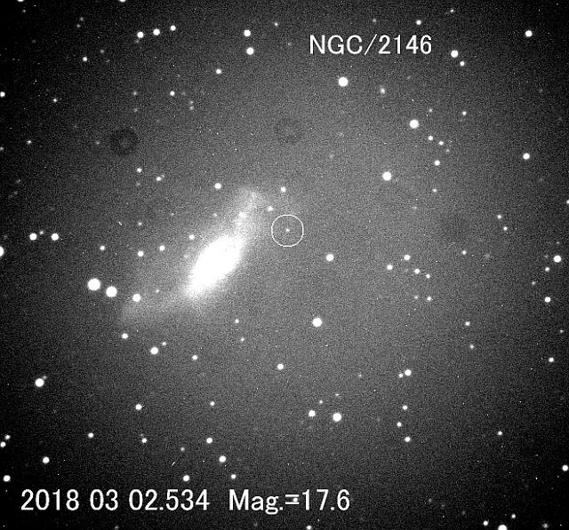きりん座の銀河NGC 2146に17.8等の超新星候補天体を発見した。