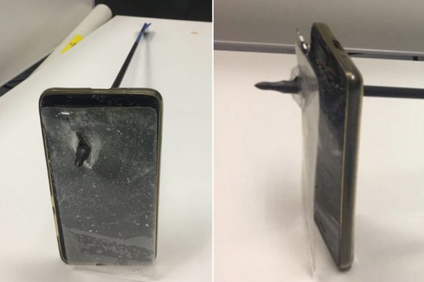 矢はスマホを貫通し彼のあごを傷つけたが、病院に行くほどの重傷は免れたという。