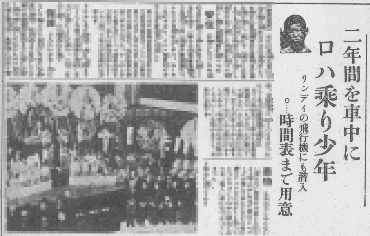 昭和8年(1933年)9月7日の朝日新聞(東京版)に「二年間を車中に ロハ乗り少年」という記事が掲載されている(ロハとは「タダ」「無料」を意味する符帳で「只」を分解すると「ロハ」になることからそう呼ばれる。芸能の世界で使われることが多い)。