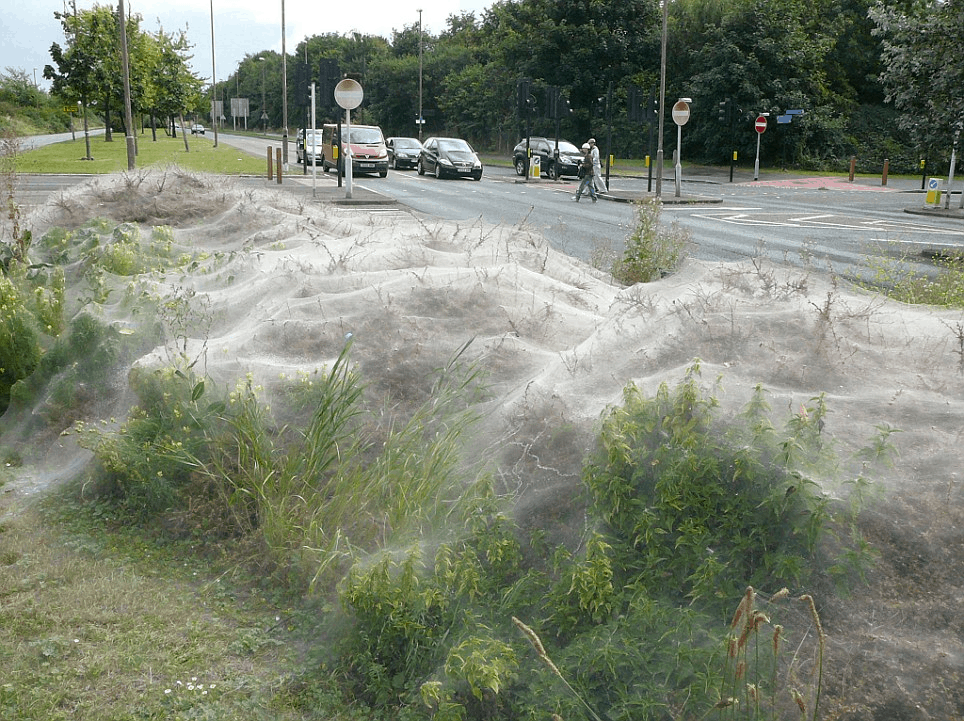 蛾の幼虫、毛虫は害の少ない虫ですが、集団で行動することが知られています。写真は蜘蛛の巣に見間違えますが、これは蛾の巣です。ヨーロッパでは、木々や生垣、駐車場まで飲み込むほどの大きな巣を大群で作ります。