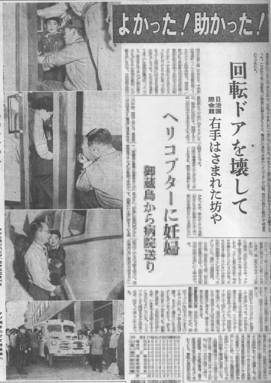 昭和32年(1957年)4月4日の朝日新聞に「よかった!助かった!」という見出しで、回転ドアによる挟まれ事故を紹介している。